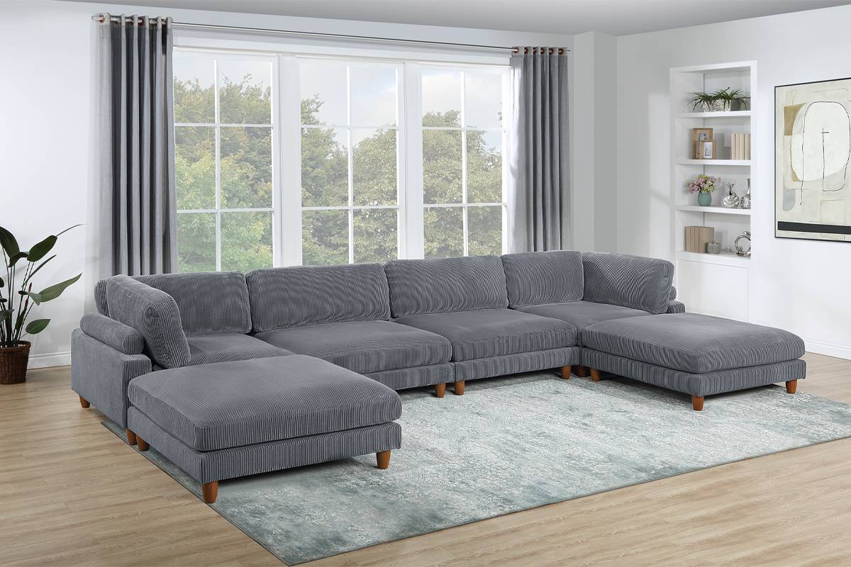 The possibilities are endless with this modular sectional. This versatile set offers endless configuration possibilities, allowing you to design the perfect layout for movie nights, entertaining guests, or simply curling up with a good book. The modern square arm design adds a touch of clean-lined style to your living room. For ultimate relaxation, the small round headrests can be adjusted perfectly to your needs. Sink into the inviting comfort of our plush corduroy fabric. The rich texture adds a touch of sophistication to any living space.